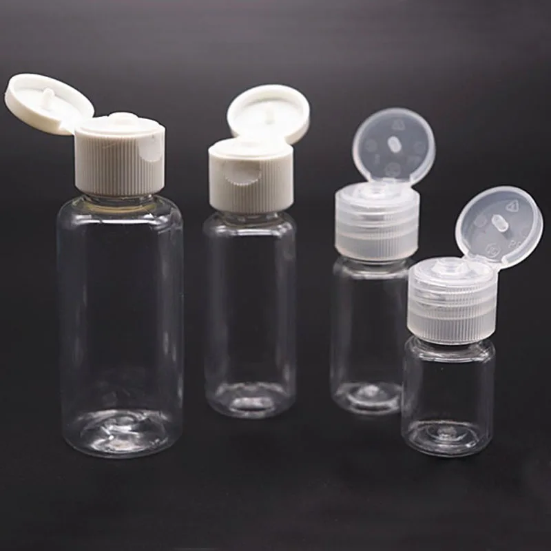 50 шт., 5 мл, 10 мл, 20 мл, 30 мл, пластиковая ПЭТ прозрачная откидная крышка, бутылки для лосьона, контейнер для косметических образцов, для путешествий, жидкая винтовая крышка, заполняющие флаконы