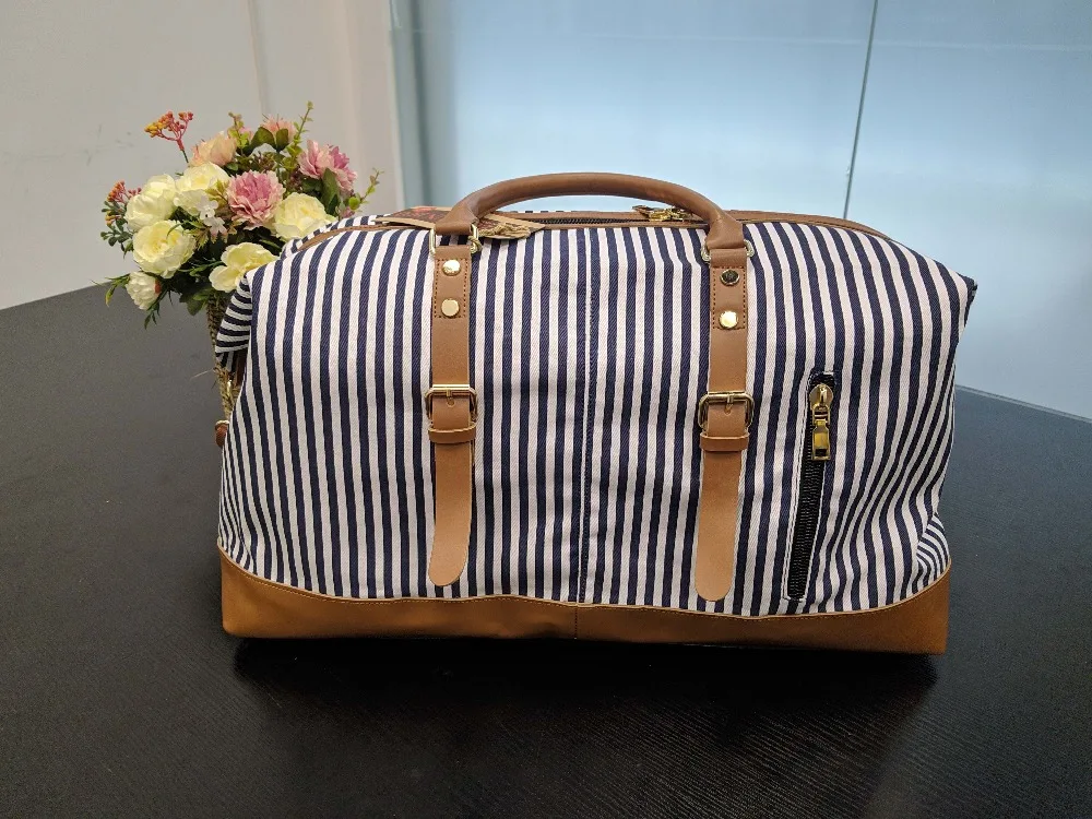 Новая холщовая вместительная модная спортивная сумка MARKROYAL для женщин, переносная сумка на выходные вечерние сумки с синими полосками