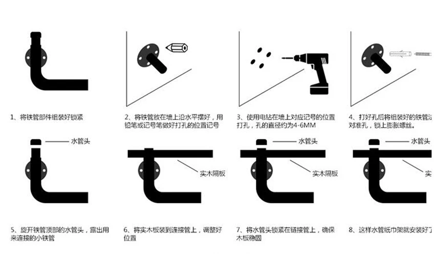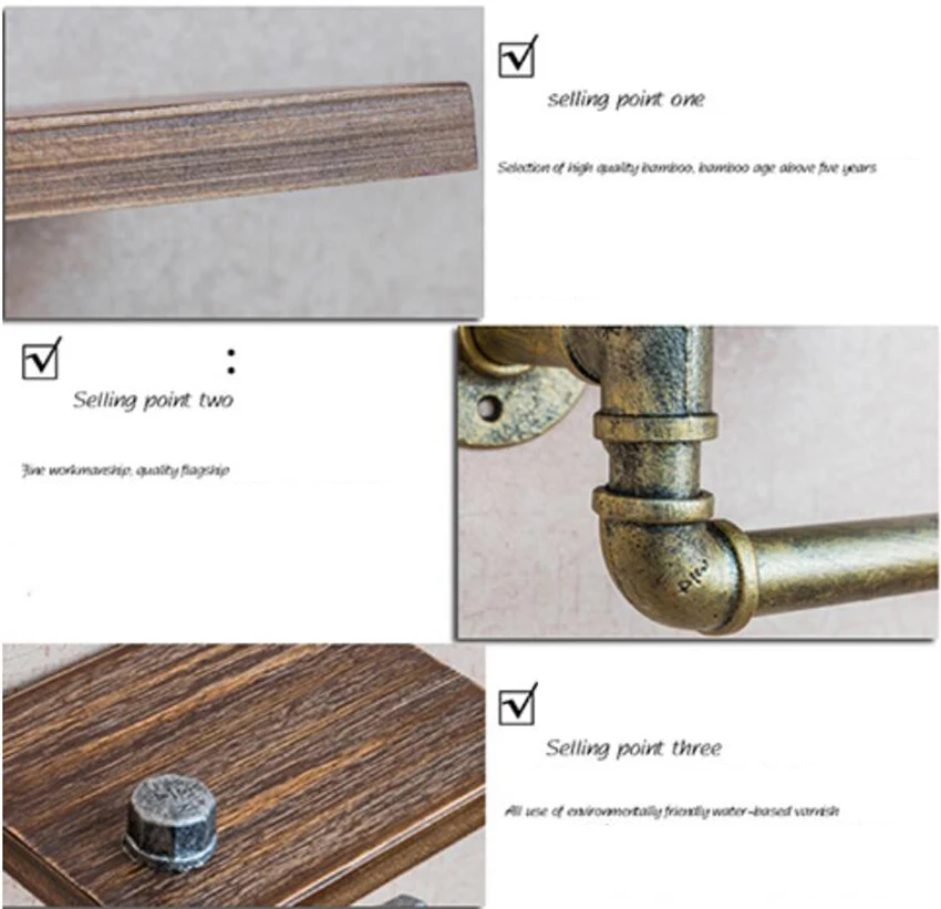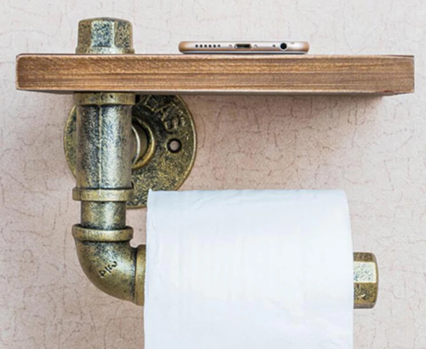 Городская промышленная настенная деревянная полка для хранения, железная трубка, держатель для туалетной бумаги, ролик, украшение для ресторана, туалета, ванной комнаты