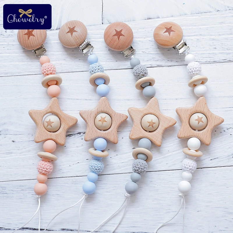 Деревянная цепочка-зажим для соски-пустышки, 1 шт.