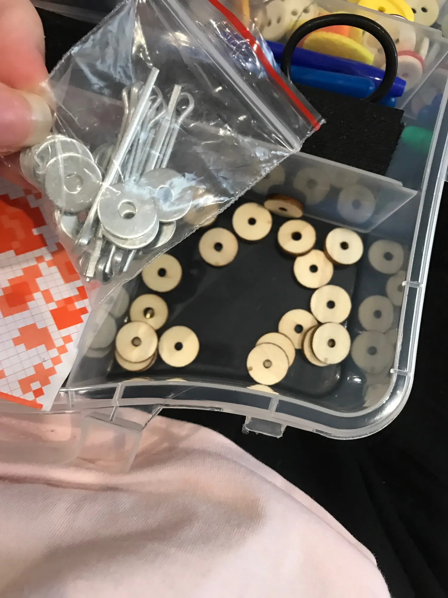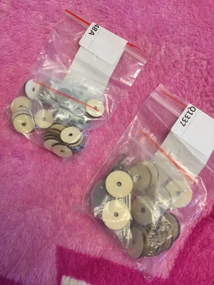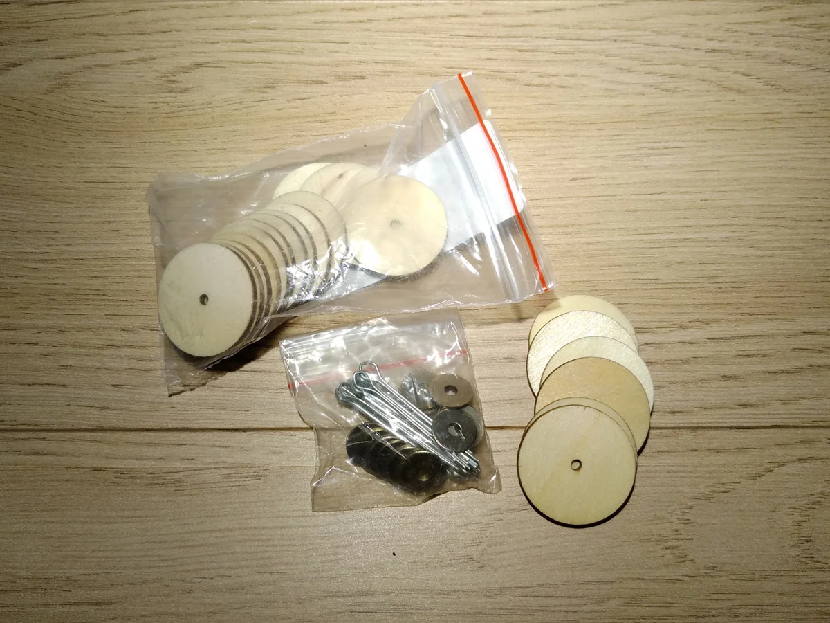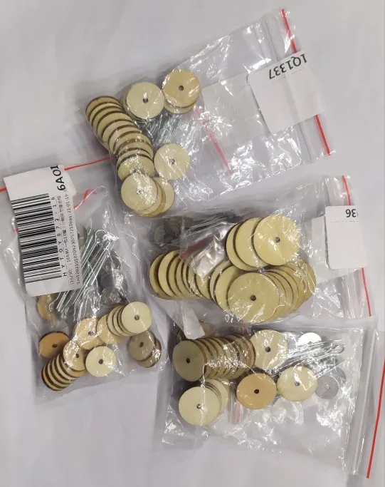 В посылке шплинтов нет. Продавец прислал только деревянные и железные диски. Бесполезная посылка. Я очень огорчена. Спор ради двух долларов открывать не буду. Пусть будет минус в карму продавцу.