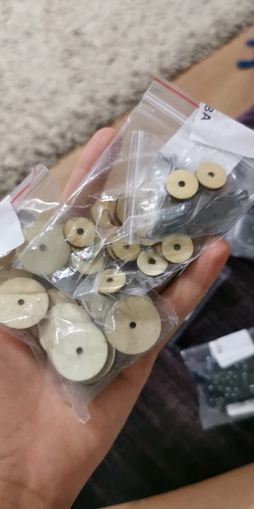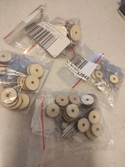 10 самих шплинтов (длинные тонкие крепления) не хватает для 10 установок, на каждое крепление нужно 2 шплинта, 2 деревянных диска и 2 металлических, а в наборе 10 шплинтов, 20 деревянных дисков и 20 металлических
