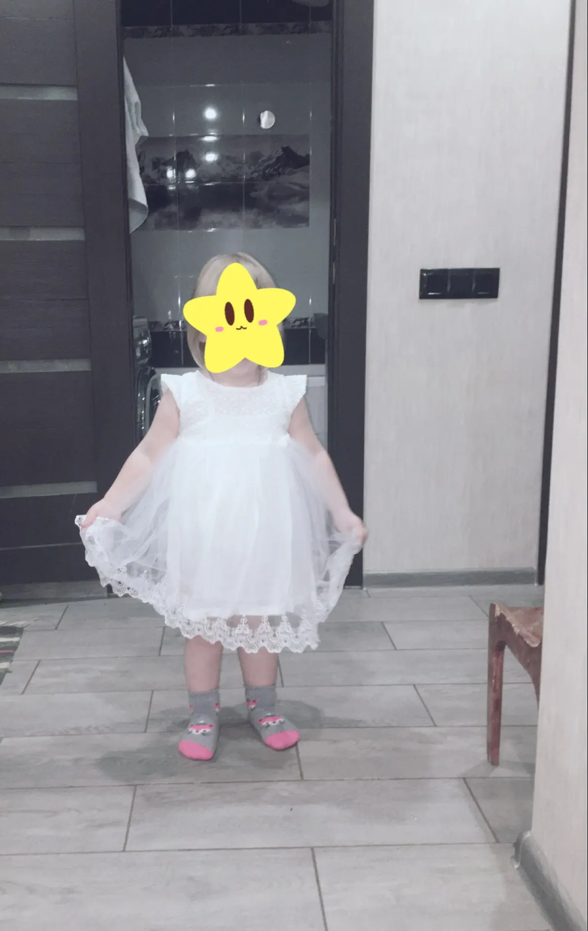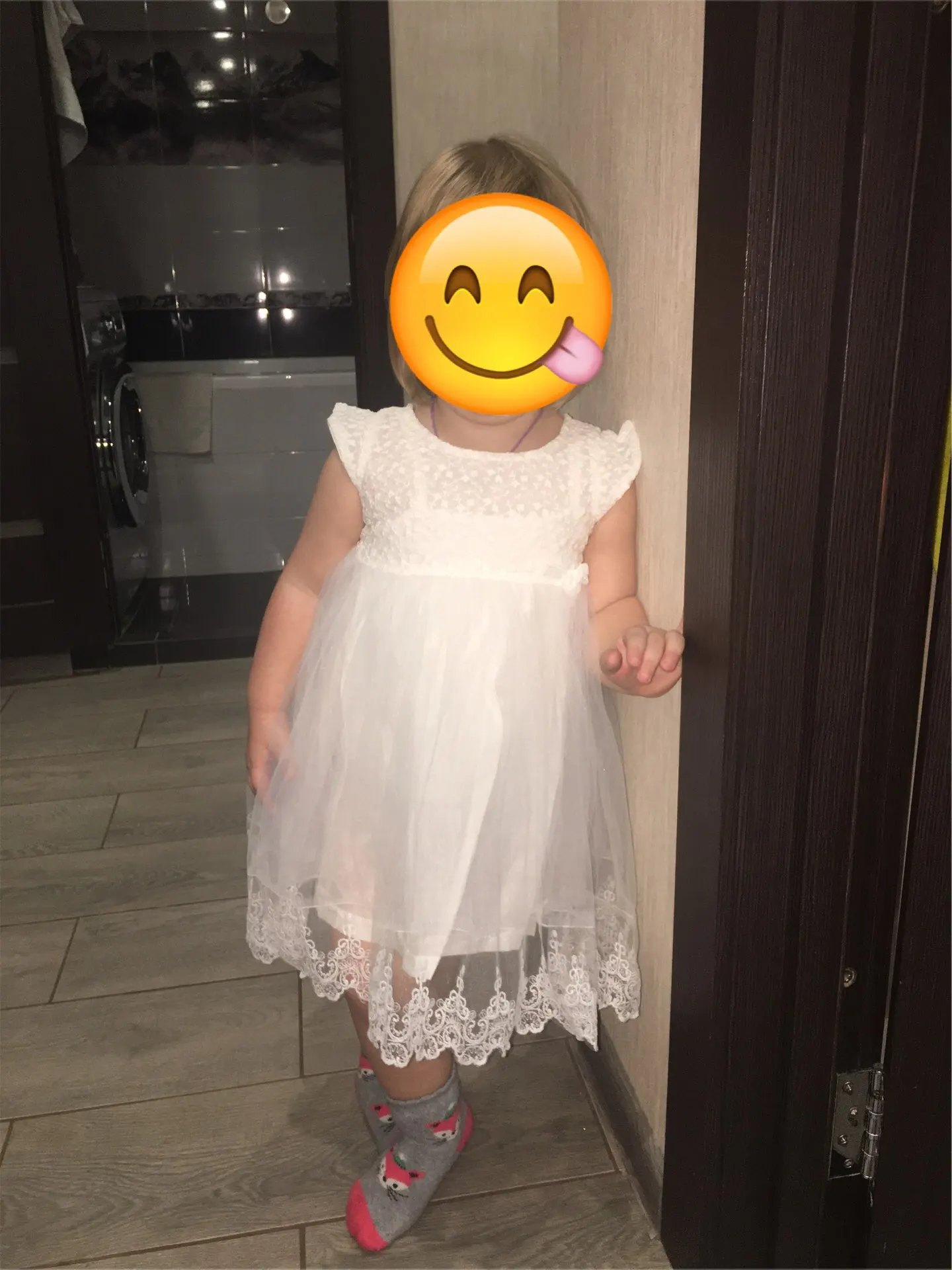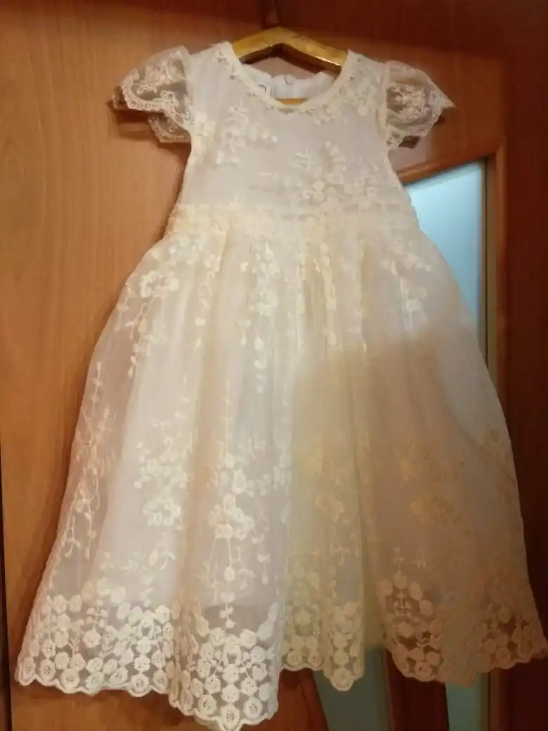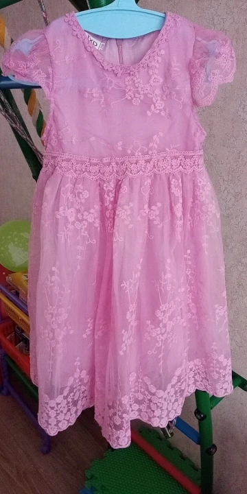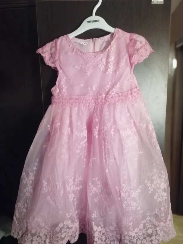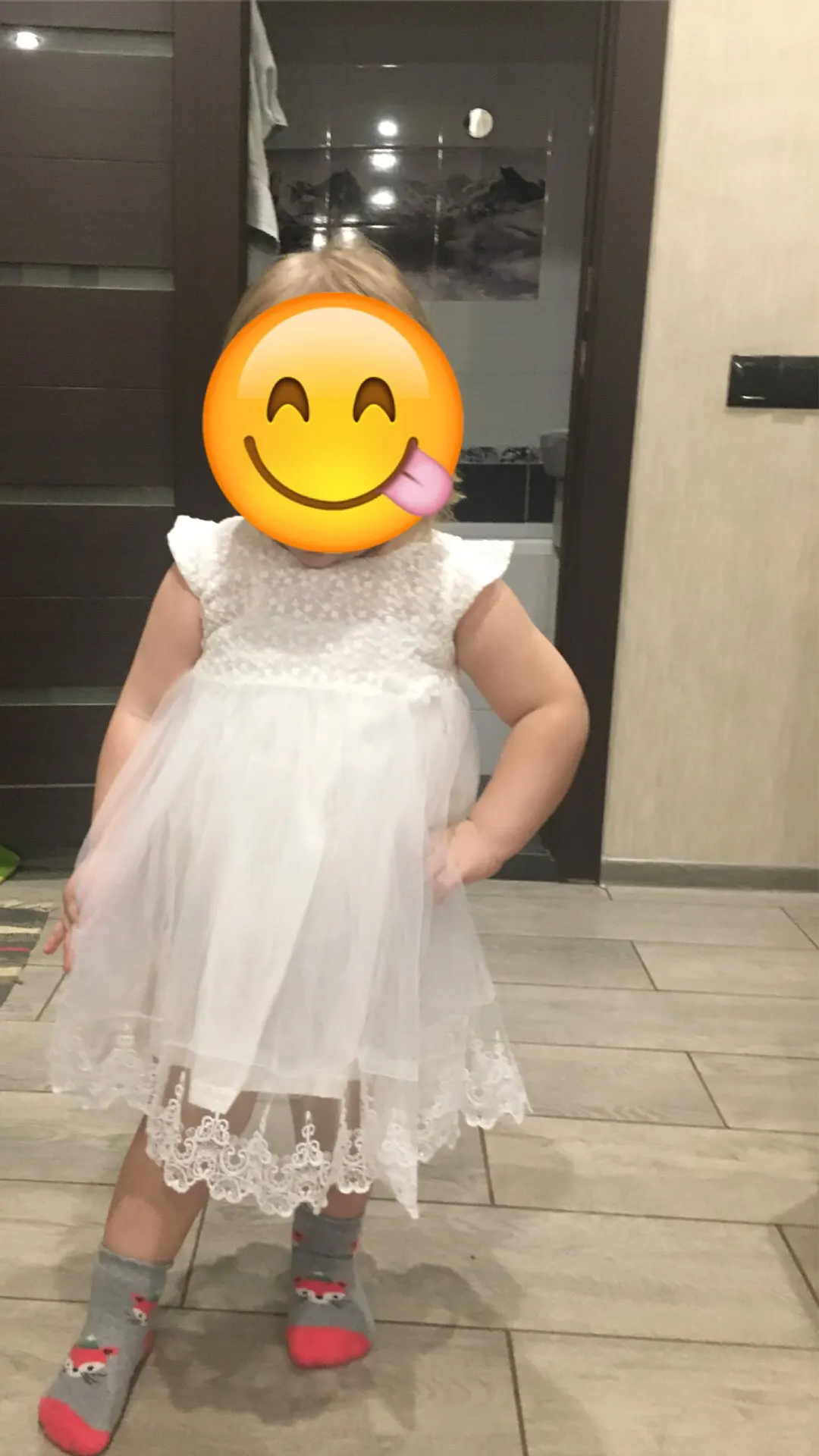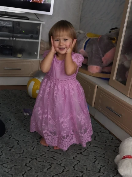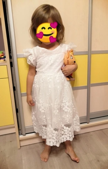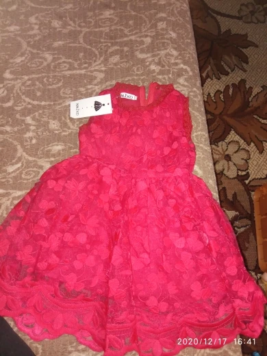 ребенку год и 11 месяцев, заказала 3Т размер только только подошёл, платье шикарное, доставили к дому, запаха нет, нитки не торчат, швы ровные, товаром довольна, платье очень красиво сидит, ожидала худший результат, рекомендую, не пожалеете