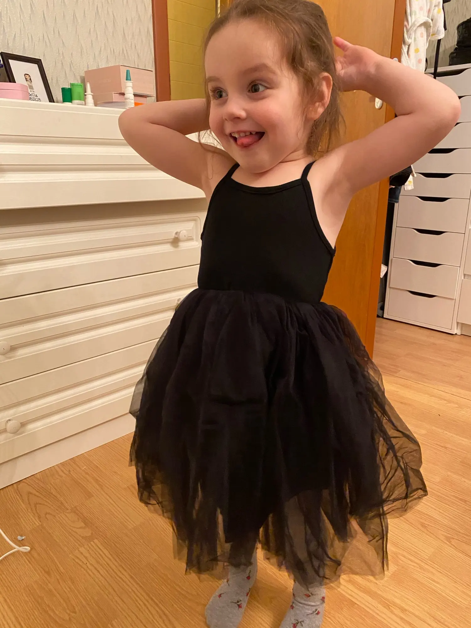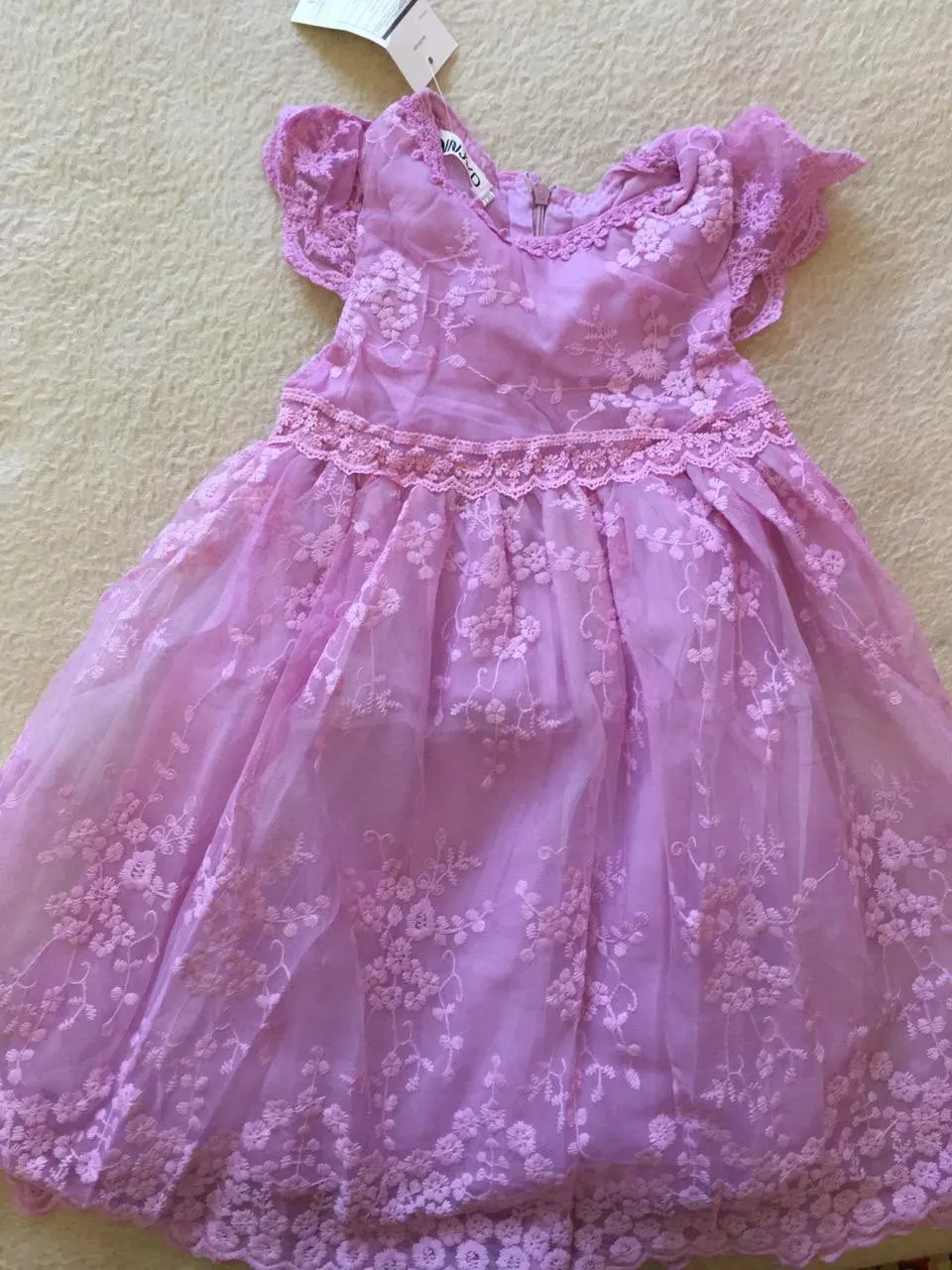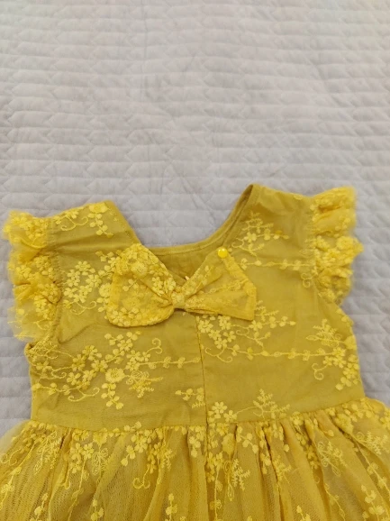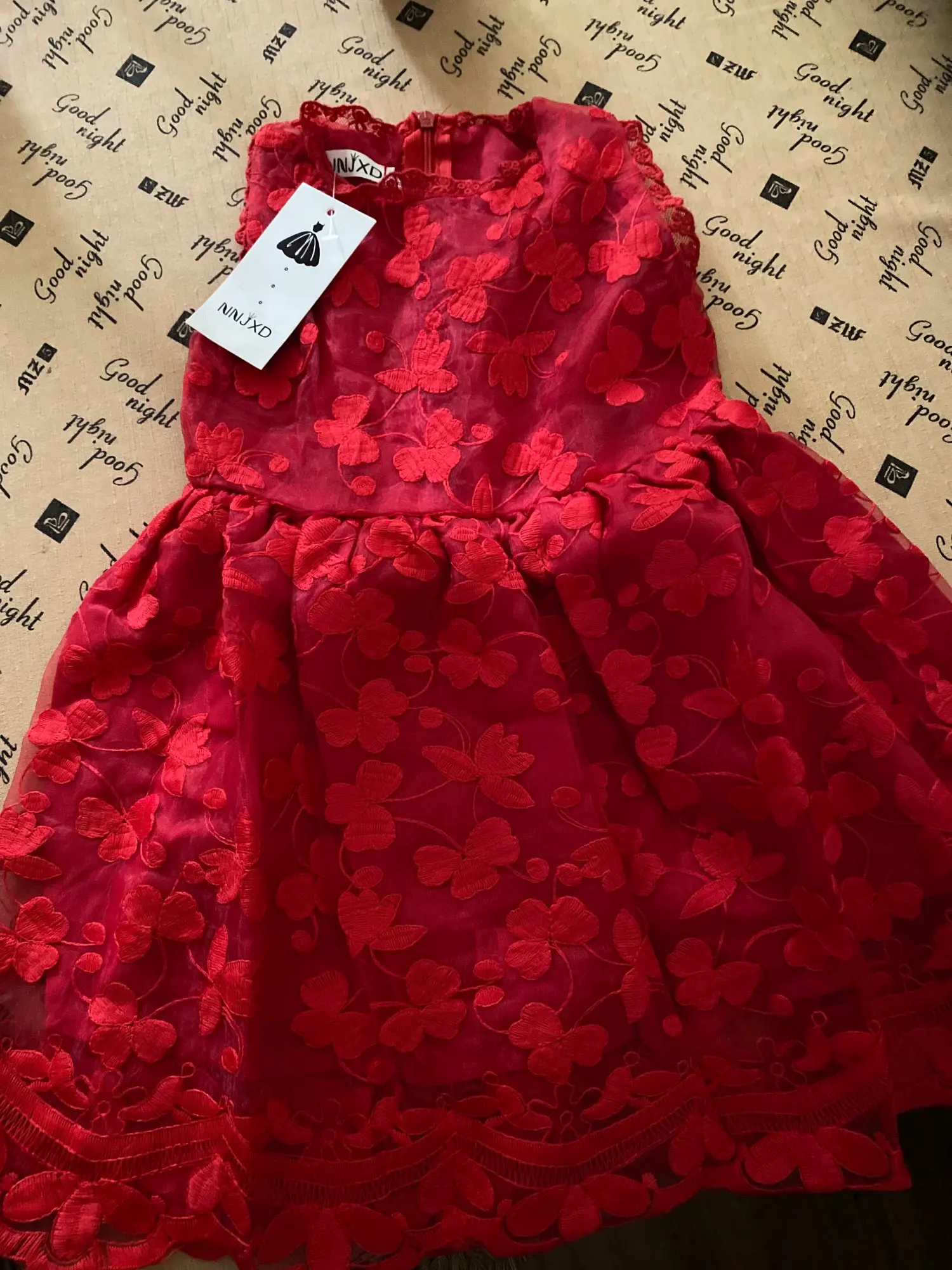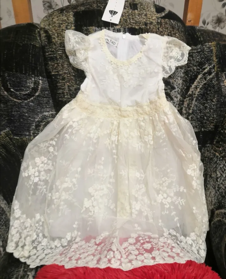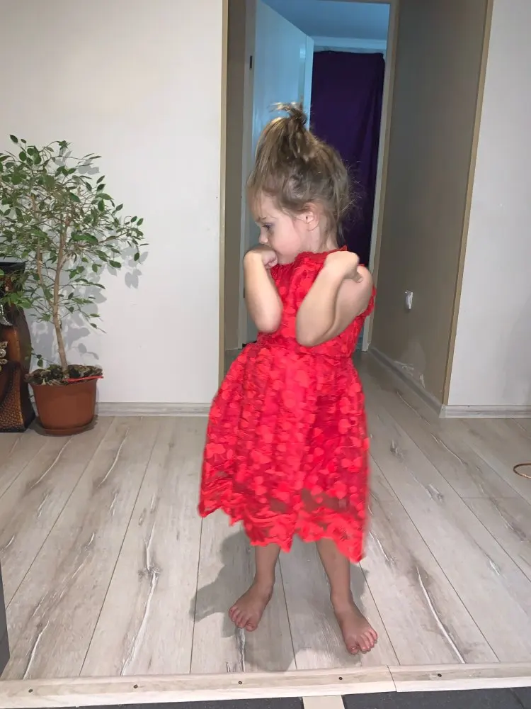 ребенку год и 11 месяцев, заказала 3Т размер только только подошёл, платье шикарное, доставили к дому, запаха нет, нитки не торчат, швы ровные, товаром довольна, платье очень красиво сидит, ожидала худший результат, рекомендую, не пожалеете
