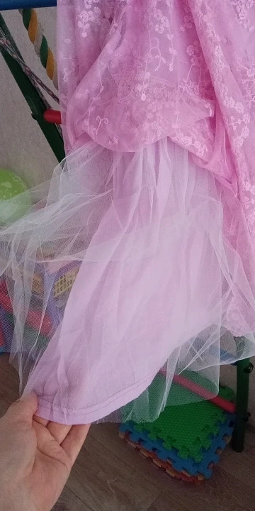 Платье полностью соответствует фото описанию на сайте. Продавец отправил товар быстро. П араметры платья: длинна-64 см, ширина -30 см. Сшито относительно аккуратно, ткань очень мягкая. Внутри подкладка, два слоя сетки. Смотрится пышненько, не просвечивает. Честно говоря, ожидала качество хуже. Была приятно удивлена, при небольшой цене вполне достойно !!! Во многих детских сетевых магазинах висят платья гораздо хуже по качеству и дороже!!! Буду приобретать товар в этом магазине с удовольствием, так как у девочек много платьев не бывает
