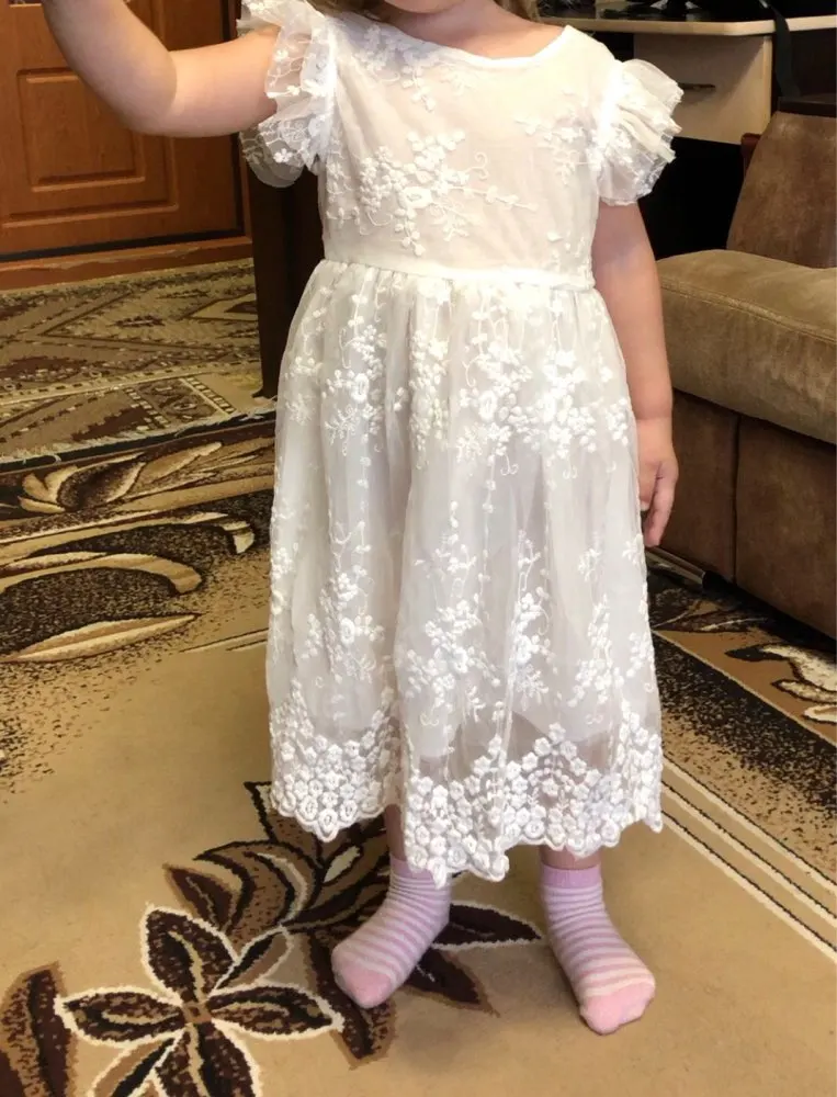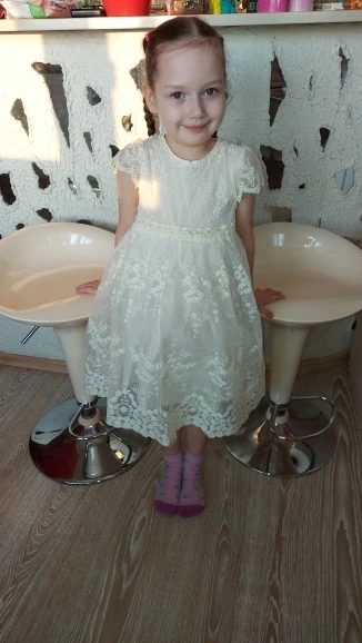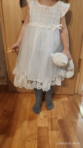 Платье милое. На рост 105 подошёл размер 110. Ниже колена, но ширина и пройма очень хорошо. Дочке 3,5 года. Мягкое кружево, хлопковый подьюбник, и из сеточки. Сзади бантик. Цвет белый. К Новому году не успело приехать, доставка 5 недель . Но это уже Почта России тормозит. Рекомендую. Со скидкой 400₽, более чем норм.