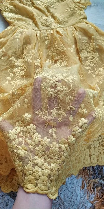Платье пришло за 3 недели почти. Очень нежное и красивое. Слабовато лимонного оттенка, не белое. Смотрится очень красиво. Кое-где торчат ниточки, но не критично, легко срезать. Брала в подарок, так что потом дополню отзыв))