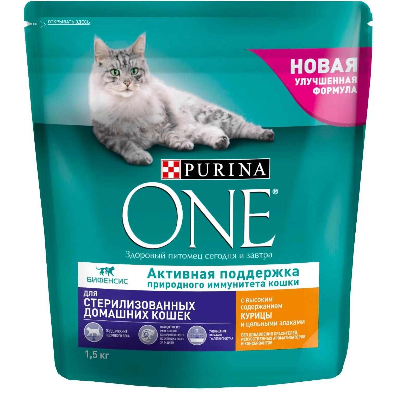 Набор сухой корм Purina ONE для домашних стерилизованных кошек и котов, с курицей, Пакет, 1,5 кг x 6 шт.