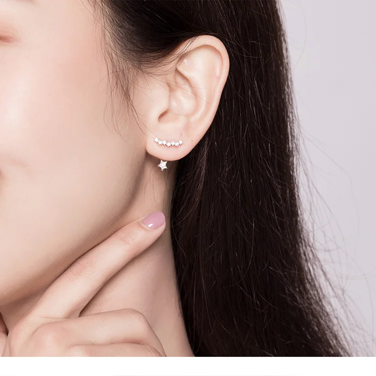 Bamoer, моно-серьги, 925 пробы Серебряная Ушная манжета, Луна и зве...