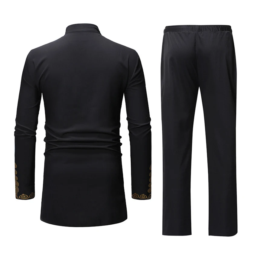Комплект одежды из 2 предметов, черная Дашики, 3D принт, рубашка, топы, брюки для мужчин, Африканская Этническая ткань, хлопок, базин, богатый