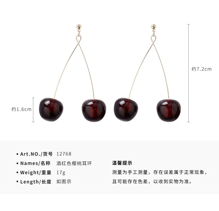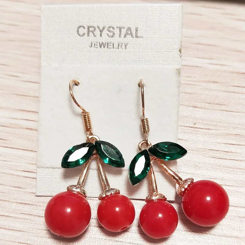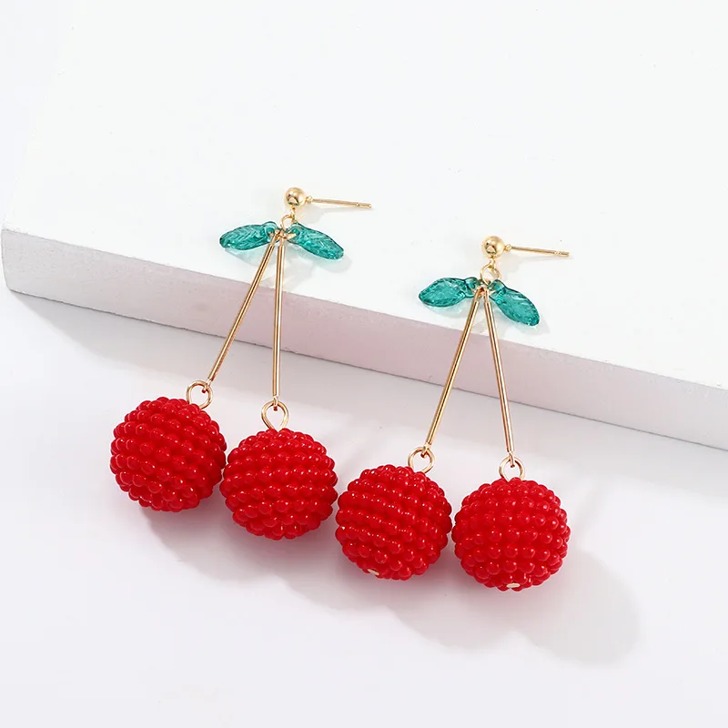 Женские серьги с вишенками, красные металлические висячие серьги, в богемном стиле, 1 пара, 2021