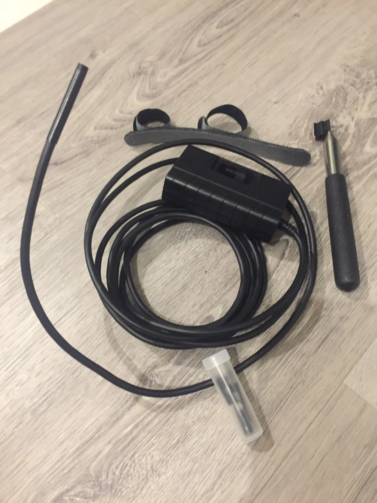 Эндоскопии пришёл быстро. Исполнение на высшем уровне. Насадки накручиваются на камеру- не упадут в не подходящий момент. впридачу длинная телескопическая "палка" -пока не понял для чего. Жаль вместо зеркала положили два магнита)))) черти!!!