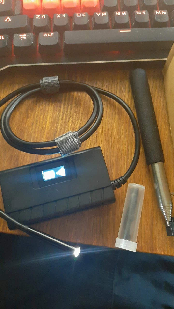 Отличный эндоскоп, меня полностью устроило это оборудование. Доставили курьером через 2 дня. В комплекте есть даже длинная телескопическая штука. С приложением легко разобраться. Работает на iphone 11 и iphone 8. Подсветка на устройстве действительно помогает. Настраивается мощность подсветки в приложении. Насадки прикручиваются нормально. Зеркальце , конечно, бесполезное. Через приложение можно делать фото и видео. Как я поняла, перед выходом из приложения нужно сохранить эти фото из памяти приложения на телефон. Если подносить эндоскоп очень близко к тому, что хочешь рассмотреть, то изображение будет размыто. Чем дальше камера от объекта, тем лучше его видно на экране. Шнур очень жёсткий, но всё-таки гнётся. Мощный аккумулятор и есть шнур для его зарядки. Рекомендую! Пожалуйста, поставьте лайк моему отзыву, если он вам помог. Спасибо!
