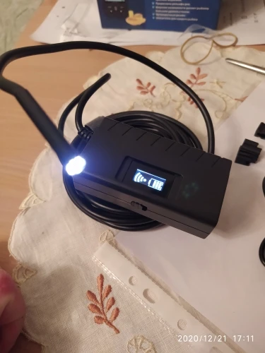 Очень быстрая доставка, заказал 10 декабря, а 15 декабря курьер привез заказ. Брал для протяжки кабеля в канале потолочной плиты, так как канал был с изменением направления и еще забит, хотел посмотреть что и как. Правда до прихода камеры все решилось, но была бы сразу такая вещь, то кучу времени было бы сохранено! Изображение нормальное, все видно, есть все необходимые насадки, приложение работает стабильно.