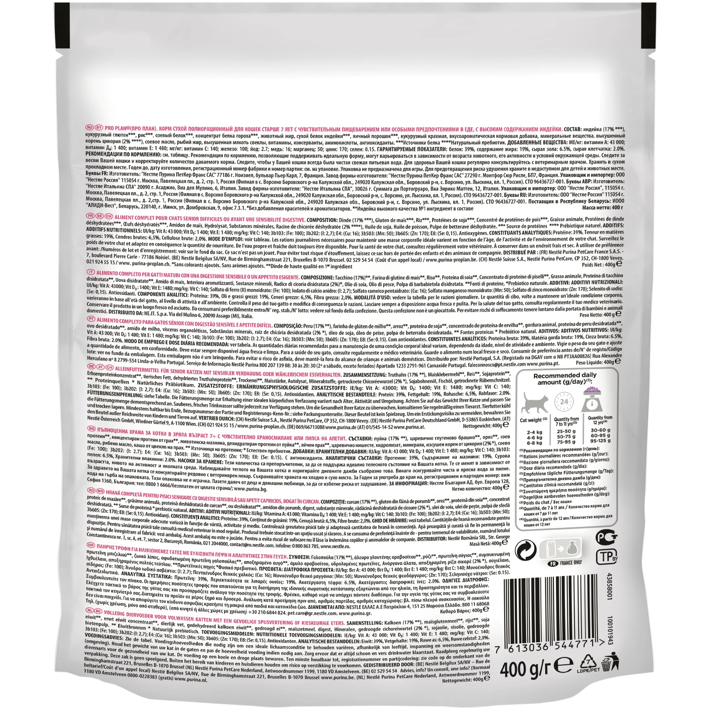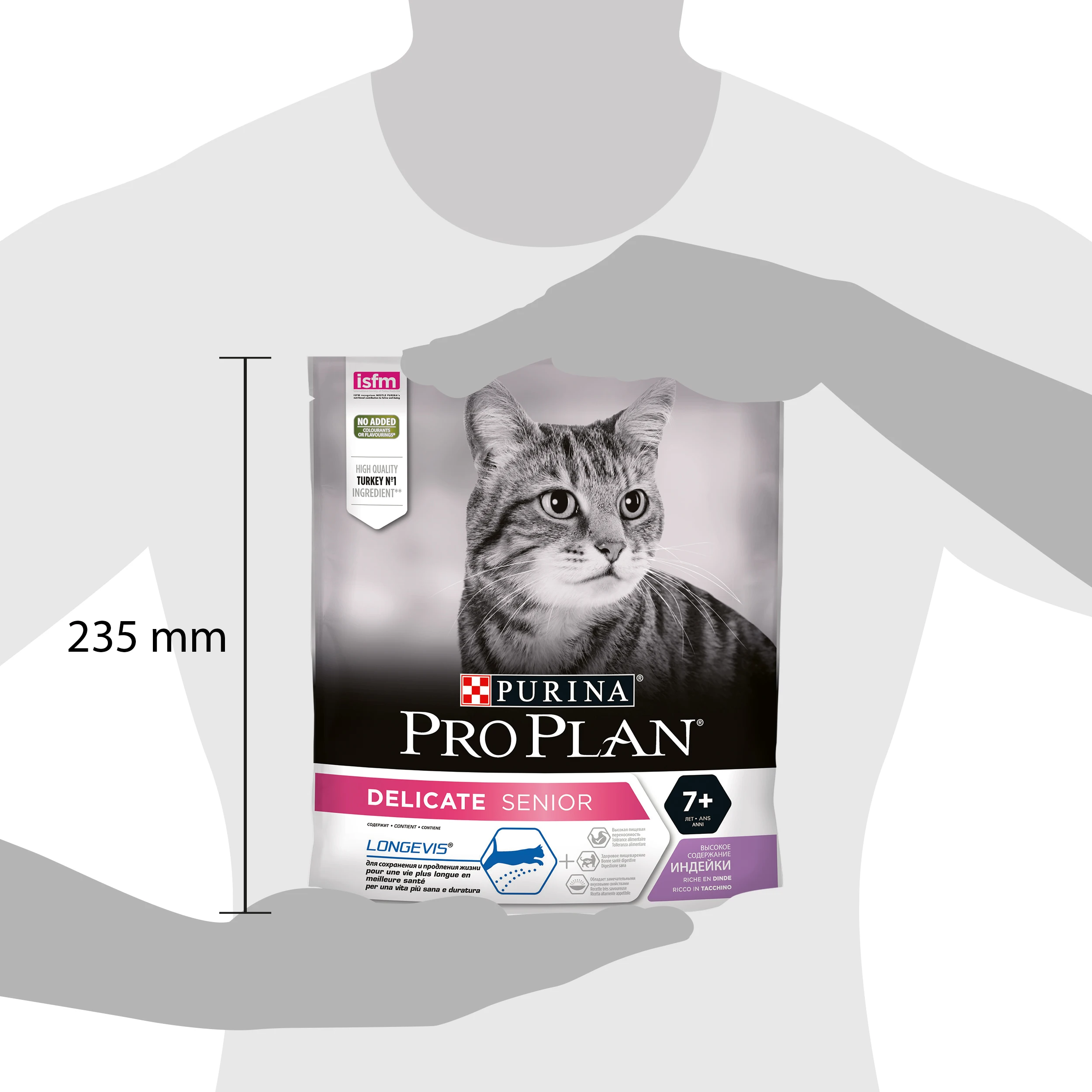 Сухой корм Pro Plan Delicate Senior для взрослых кошек старше 7 лет с чувствительным пищеварением, с индейкой, Пакет, 400 г