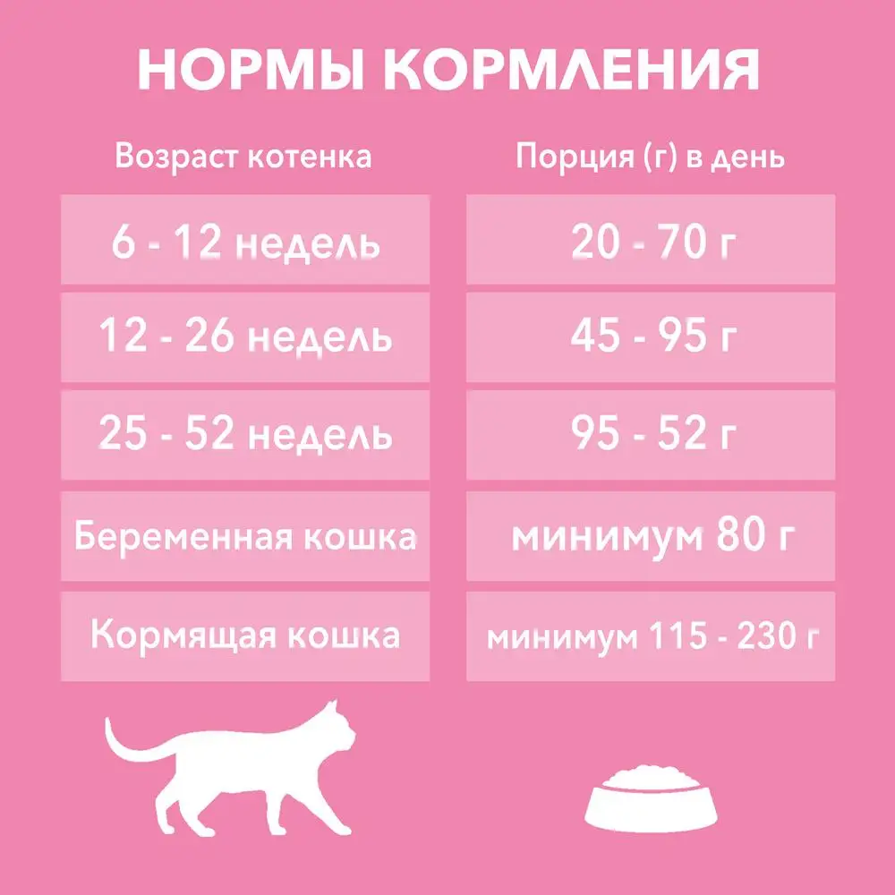 • Сухой корм для котят подходит также для беременных и кормящих кошек.