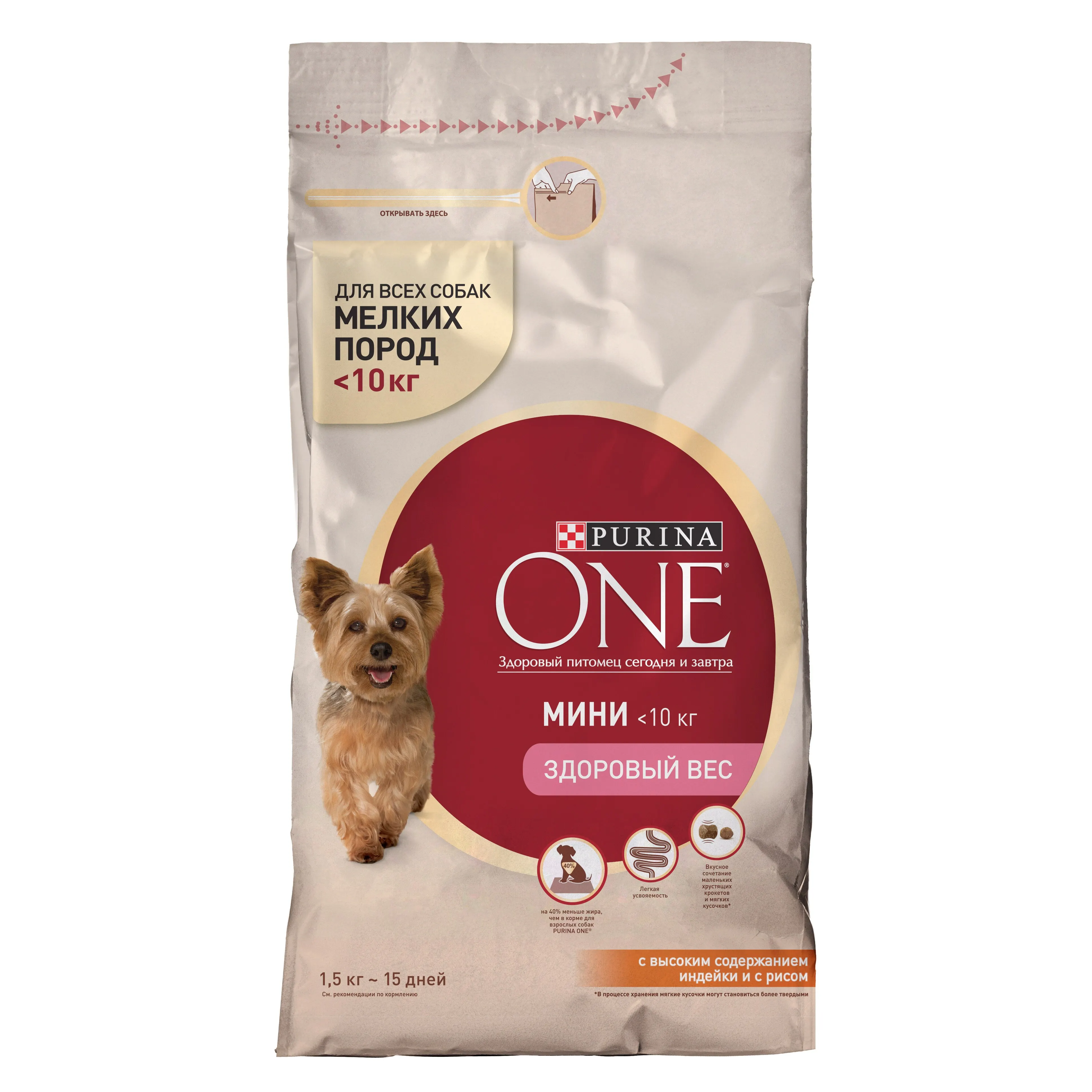Набор сухой корм для собак мелких пород Purina ONE МИНИ Здоровый вес, с индейкой и рисом, Пакет, 1,5 кг x 6 шт.