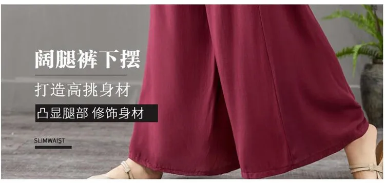 Женские брюки с широкими штанинами, из тонкого хлопка и льна, с эластичной резинкой на талии, 2021, 6XL, 7XL, летние, размера плюс