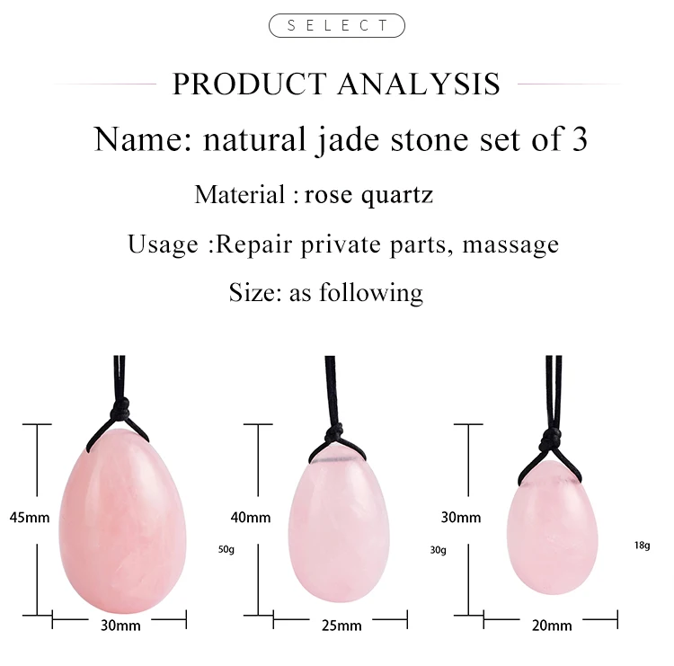 3 шт. натуральная натурального нефрита яйца из розового кварца пробуренных Йони набор яиц для массажа Кегеля мышц влагалища, который поможет избавиться от Природный камень для массажа, 3 шт. в комплекте