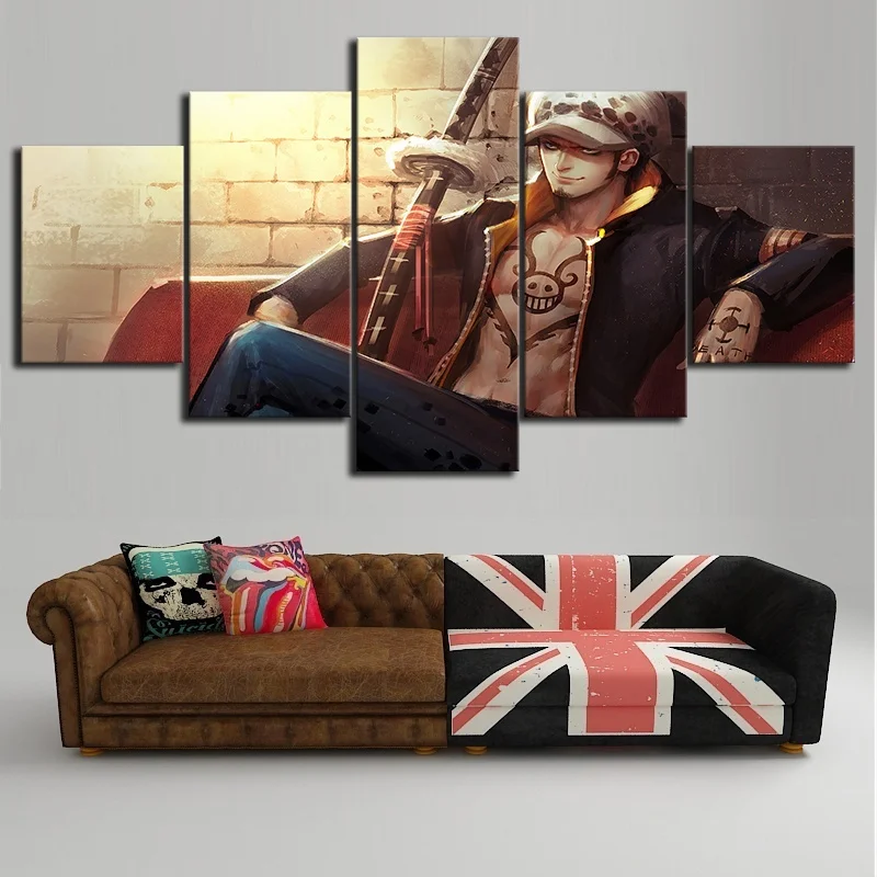 Модульные плакаты с современным HD-принтом, 5 панелей, Аниме One Piece, Трафальгар, закон, настенное искусство, холст, картины, домашний декор, рамка