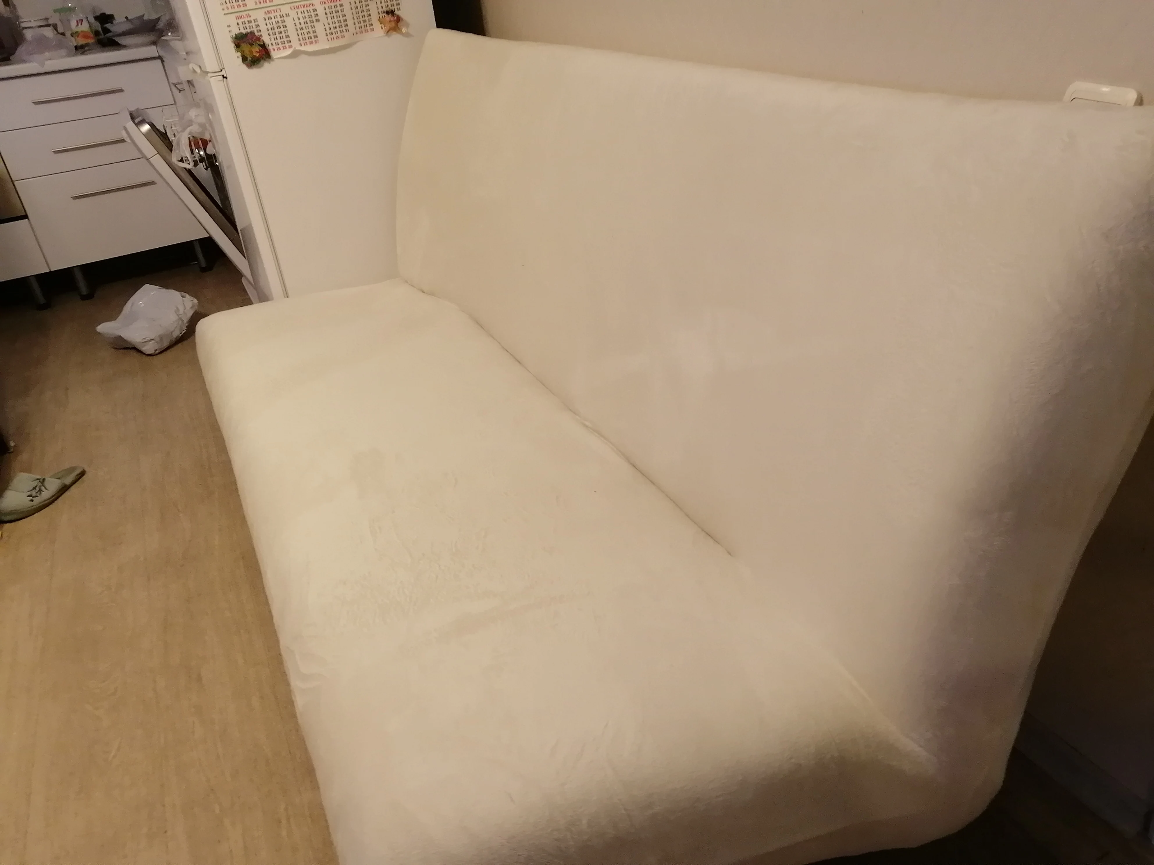 Отличный чехол. Очень эластичный, на ощупь бархатистый. Были сомнения по поводу того, как он сядет на диван клик-кляк, но вроде вполне сносно получилось. Только с торцов немного видно родной цвет дивана. В целом, вышло намного выгоднее, чем регулярные химчистки.