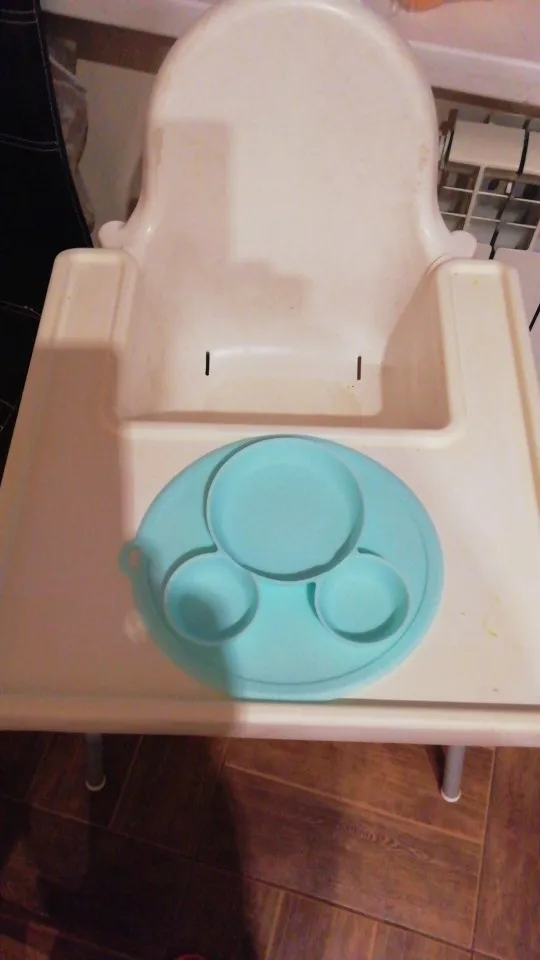 доставка около 2 недель. по поверхности не двигается, но если ребёнок возьмёт и поднимет, легко отстаёт, так что малыш легко выкинет еду. на столик икеа чуть-чуть не влезает,загинается дно