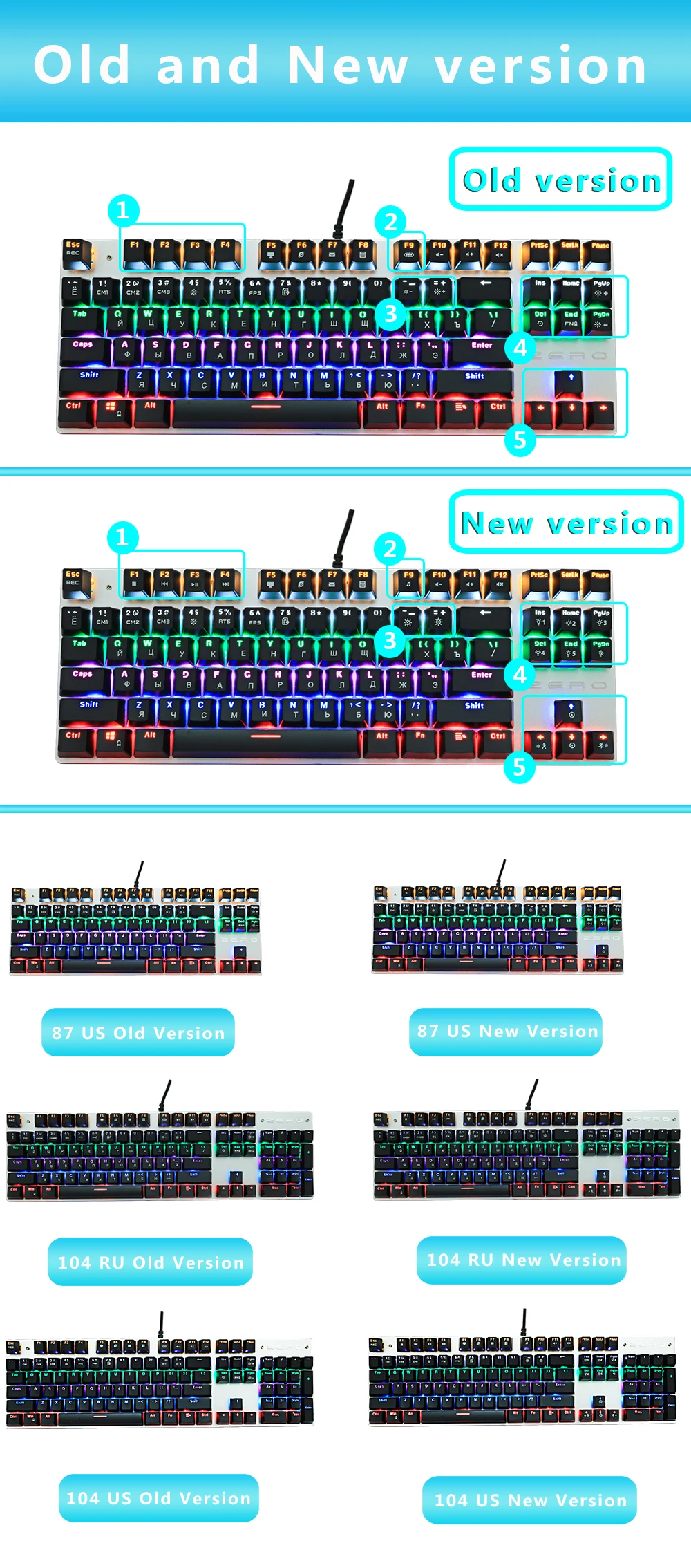 Игровая механическая клавиатура 87104 ключи РусскийАнглийский USB Проводная светодиодный подсветкой игровые клавиатуры синийкрасный переключатель для компьютерных игр