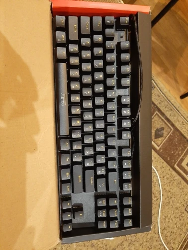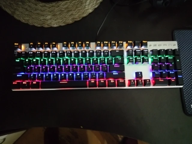 пришло быстро в Казань, продавец положил наклейки на русском) минус то, что подсветку нельзя сделать однотонной, заказывал на красных переключателях, довольно тихо)