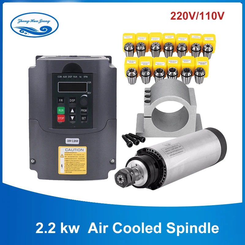 2,2 кВт 220 В/110 В шпиндель с воздушным охлаждением шпинделя 4 подшипника воздушного охлаждения 2200 Вт фрезерный двигатель с ЧПУ + инвертор 220 В + 80 мм зажим + ER20 цанговый