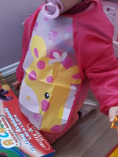 Товар выслали быстро. Передник очень хорошо подходит ребенку. Свои функции выполняет. Рисунок яркий и красивый.