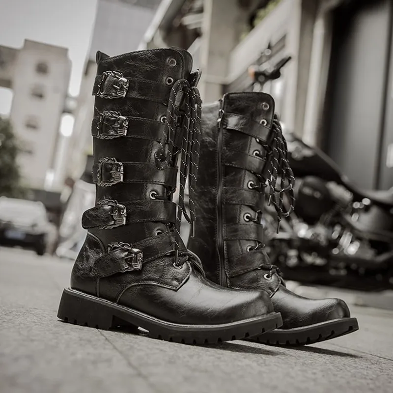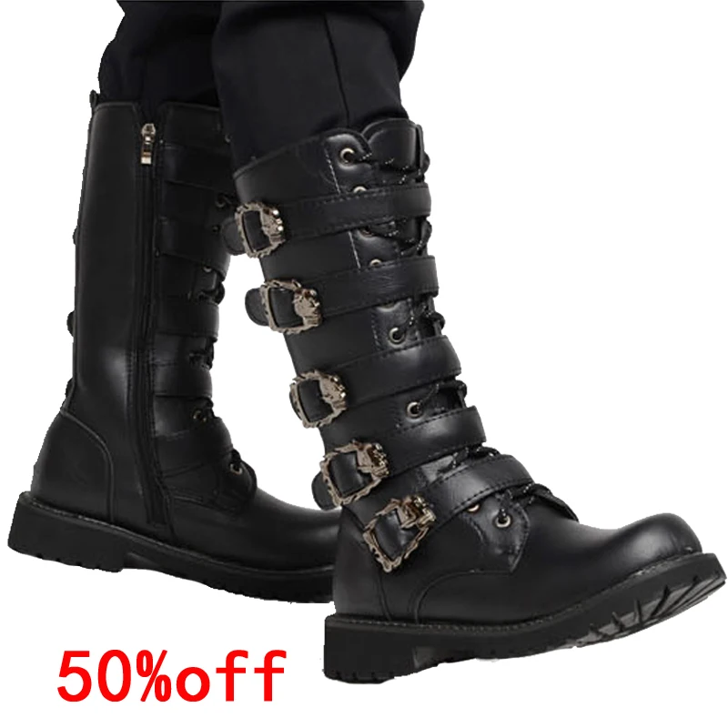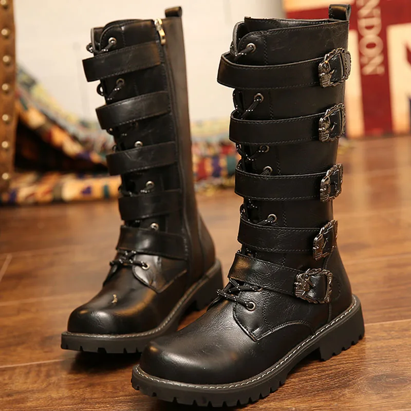Мужские кожаные мотоциклетные сапоги до колена; Военные ботинки; Ботинки в готическом стиле; Ботинки в стиле панк; Мужская обувь; Армейские ботинки; Ботинки-дезерты; Повседневные ботинки