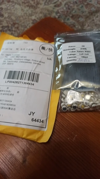 Доставка в Екатеринбург 3 недели. Через "Пятерочку". Магазин рядом с домом, очень удобно. Светодиоды рабочие. Спектр для аквариума оптимальный. Не зеленят. При 3.4В ток 650мА. Все в норме. Рекомендую