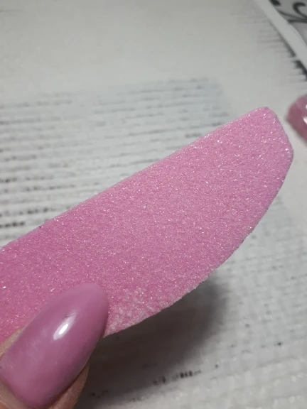 Товар прийшов швидко, приблизно за 3 тижні. З однієї сторони баф має напилення схоже на цукор, з іншого мякий абразив . Подивлюся як в роботі буде.