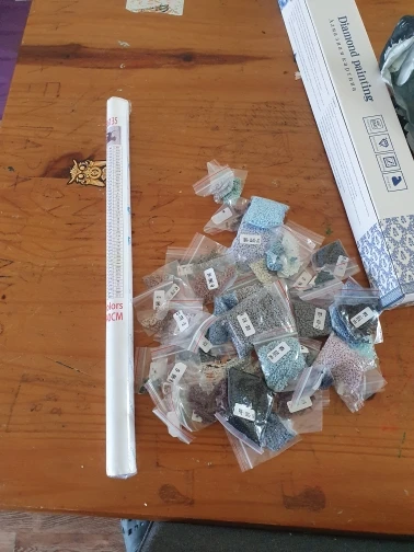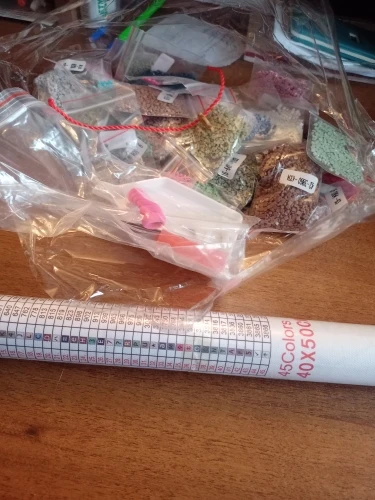 Заказ отправили быстро. На почту пришла 3.05, получила на другой день. Проверила, все цвета на месте. Хотя упаковка и коробка мятая, картина не пострадала. Стразы упакованы в пакетики, что очень удобно. Положили подарок браслет с рыбкой. Пока заказом довольна, посмотрю, как будет выглядеть картина