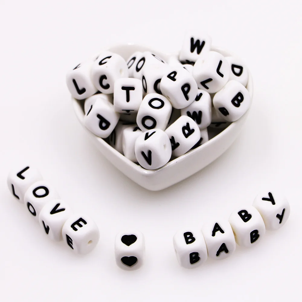 10 мм 10 шт., силиконовые бусины в виде букв для прорезывателя зубов