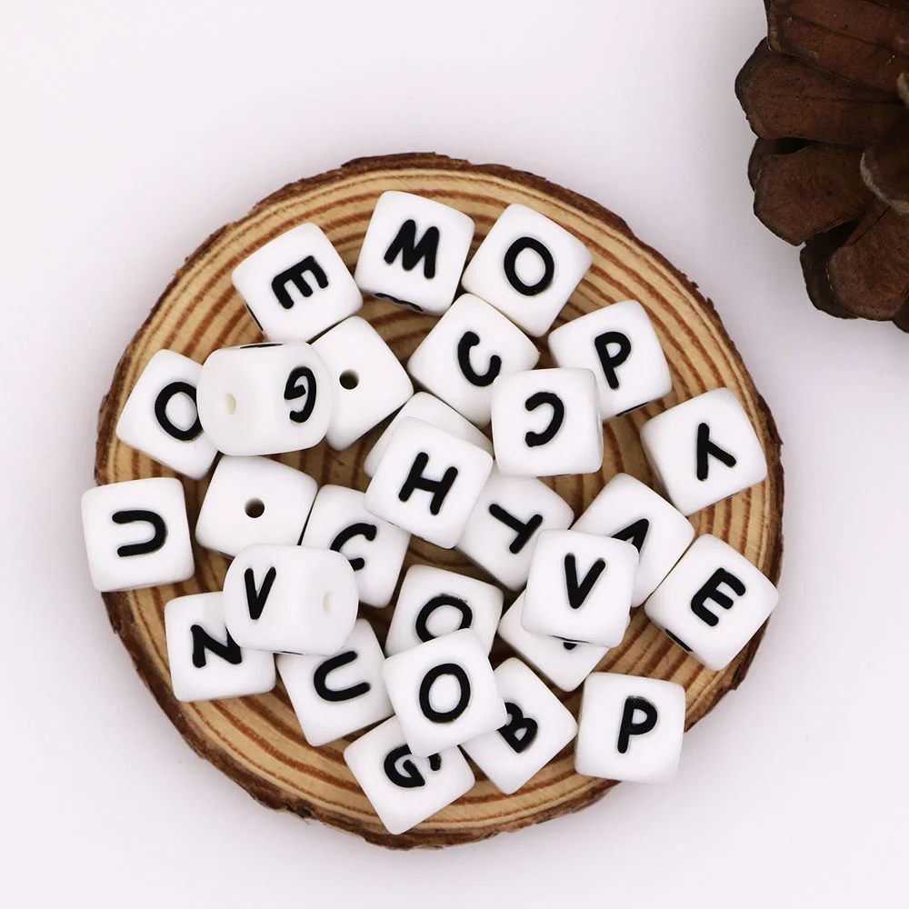 10 шт., силиконовые бусины для прорезывателя зубов, с алфавитом