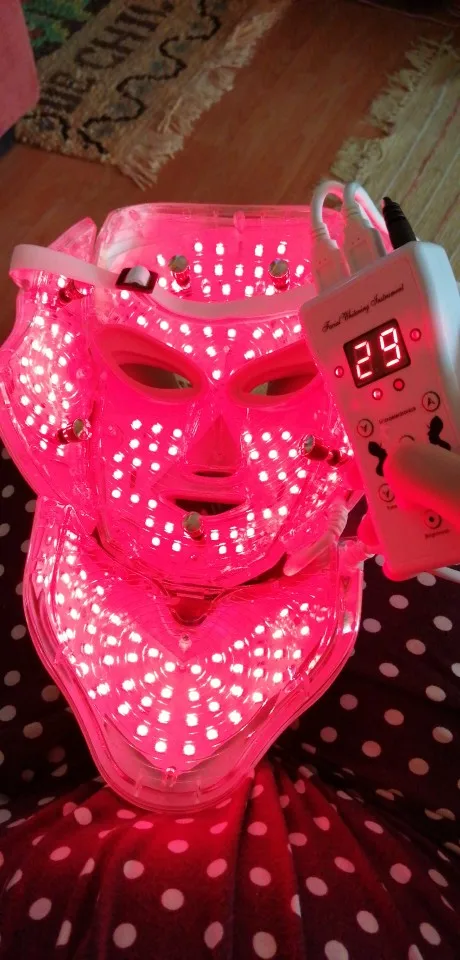 1,7 цветная светодиодная светотерапевтическая маска, простой в использовании контроллер для переключения между цветом, интенсивностью и встроенным таймером, эластичный регулируемый ремешок для сохранения маски. 2. Каждый цвет света показывает полезные эффекты на конкретных условиях кожи. Безопасный, мягкий, не стимулирующий! 3. Использование 3D человеческого дизайна головы, светодиодный фотонный охват более широкий, нет необходимости в форме лица, вся семья может использовать. 4. Подавляет образование пигмента меланина; Улучшает эластичность кожи, подтягивает и подтягивает кожу; Уменьшает и предотвращает морщины, помогает борется с жирными зонами. 5. Светодиодная светотерапия-это потрясающее лечение, которое подходит для всех типов кожи. Теперь вы можете получить это профессиональное лечение в домашних условиях.