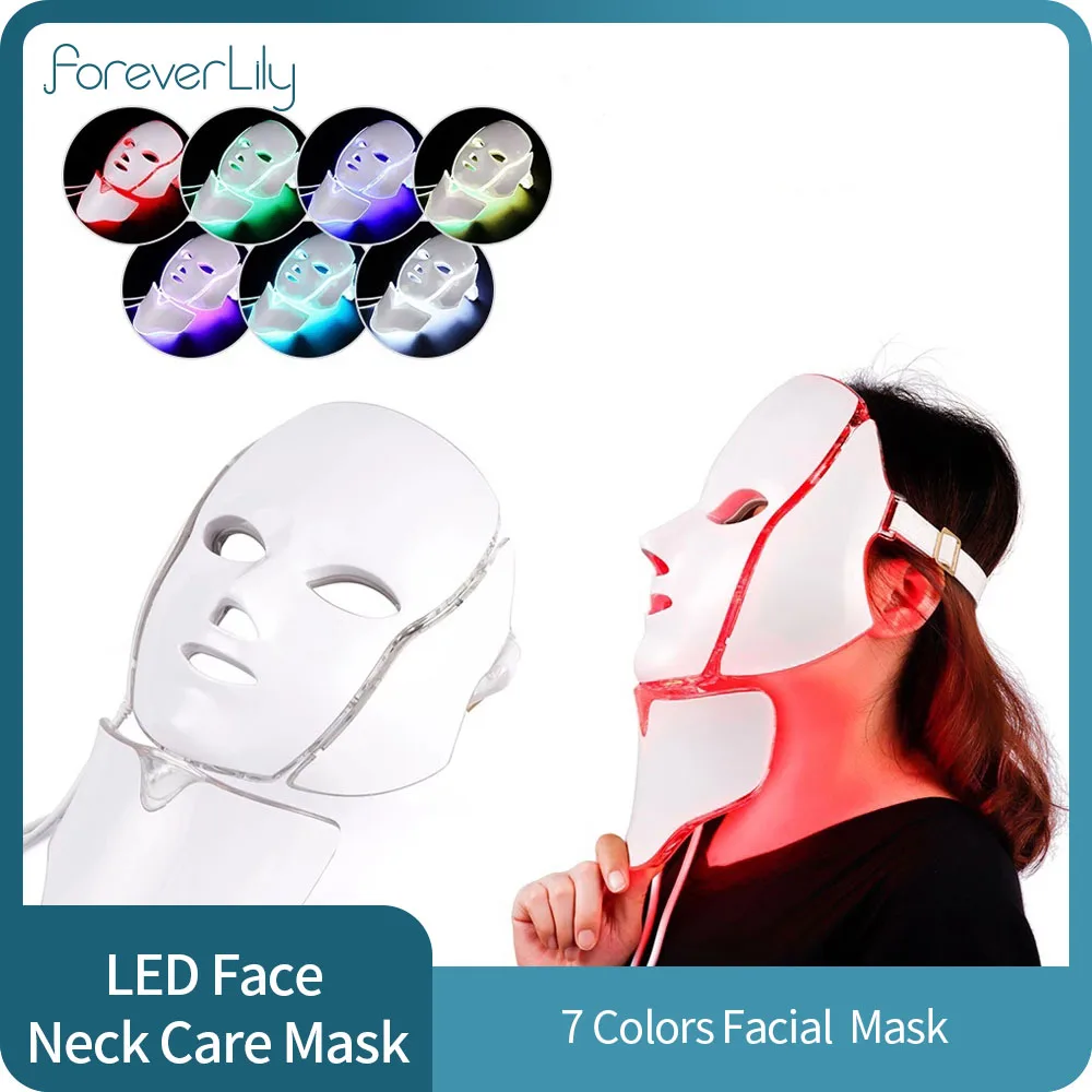 Светодиодный маска для лица красота омоложение кожи Фотон светильник терапия 7 цветов маска с заботой о шее морщин акне подтягивающий инструмент для кожи
