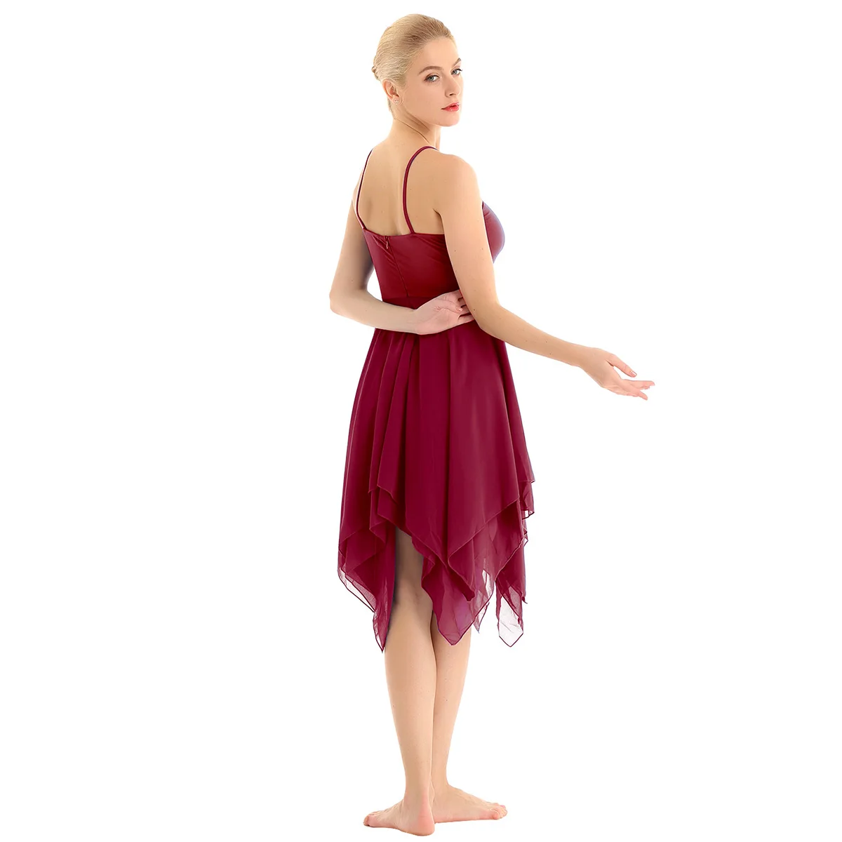 Особенности: Женское шифоновое платье для танцев без рукавов для взрослых, однотонный цвет, застежка-молния. Бретельки на тонких бретельках и эластичный лиф, 2 асимметричных шифоновых слоя платья. Очень мягкие и дышащие, приятные на ощупь, удобные в носке. Подходит для бальных танцев, танцев, соревнований и выступлений на сцене и т. д. Пожалуйста, проверьте информацию о размере перед покупкой, рекомендуется ручная стирка, машинная стирка.