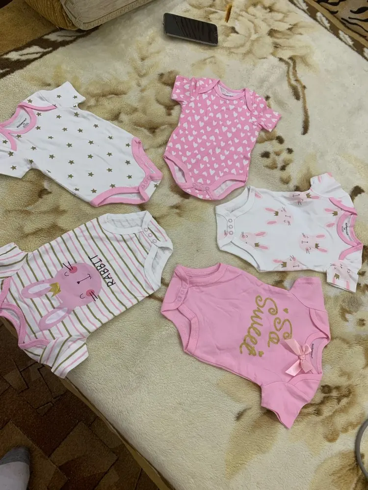 Боди заказывала размером 9 м. Сравнила все боди между собой и оказались все пошиты по разному размеры друг от друга отличаются, хотя на всех написан 9 м. Меня не смутило. Доставка быстрая пришло все за дней 10