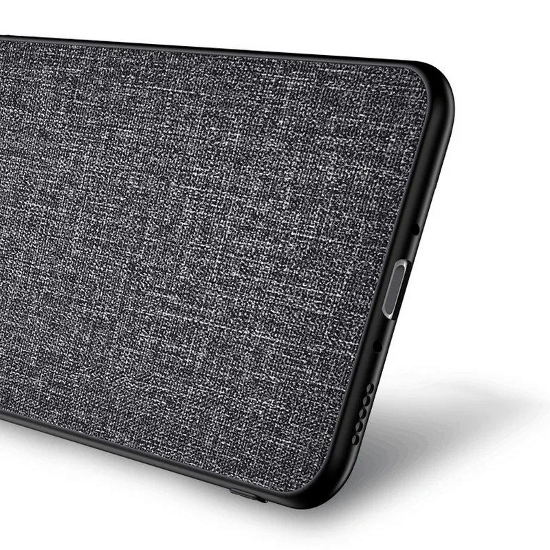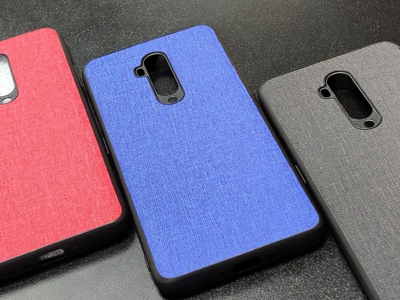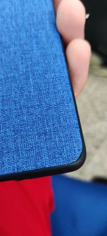 Качество всего чехла хорошее. Задняя часть не из ткани или ткани, это резина, которая выглядит как она. Задняя сторона толстая, ударопрочная камера не может соприкасаться с поверхностью, на которой вы поместите телефон. Единственная проблема заключается в том, что продавец ошибся в одном из цветов в моем заказе. Покупал бы снова.