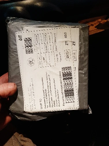 Как на фотографиях. Он прибыл менее чем через месяц в страну, но был удержен в почтовом отделении в течение месяца. Возможно для праздников