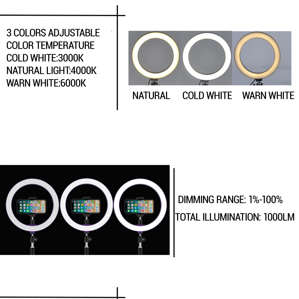 Кольцевой светодиодный светильник, 26 см, со штативом 160 см, USB-разъемом