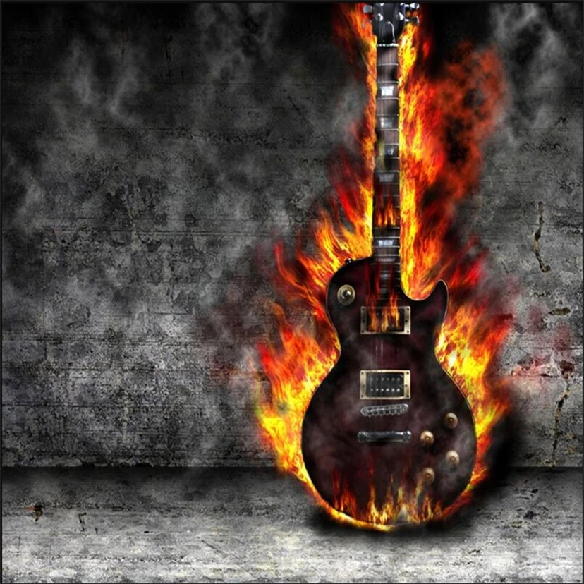 5D камни в форме ромбаНабор для рисования с круглыми камнями и полотном картины diy Алмазная мозаика, алмазная Вышивка крестом домашний декор Стразы фотографии Пламя гитара WG530