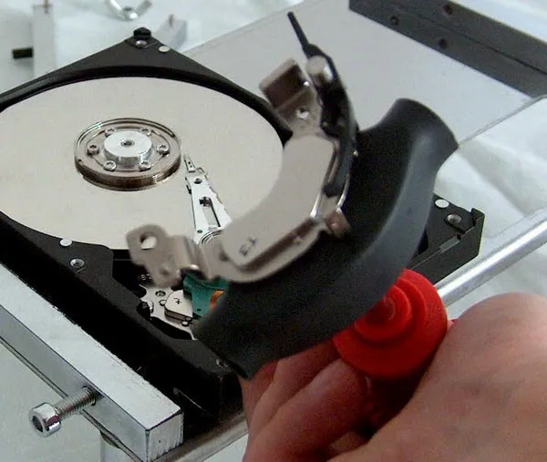 Универсальный инструмент для ремонта жесткого диска верстак гарантирует работу с HD на относительно стабильном столе, что делает вашу работу проще и надежнее.
