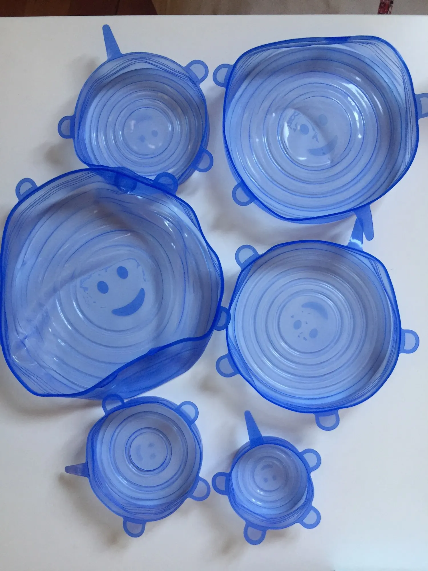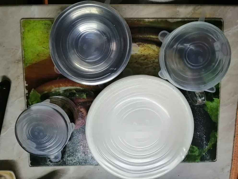 Отличные крышки, эластичные. Хорошо закрывают салатницы/миски, даже меньший размер можно натянуть на большой диаметр.
