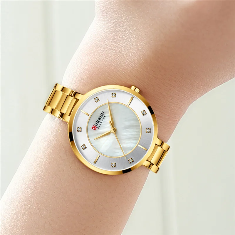 Женские часы CURREN, водонепроницаемые золотые наручные часы, классический браслет из нержавеющей стали, женские часы 9051