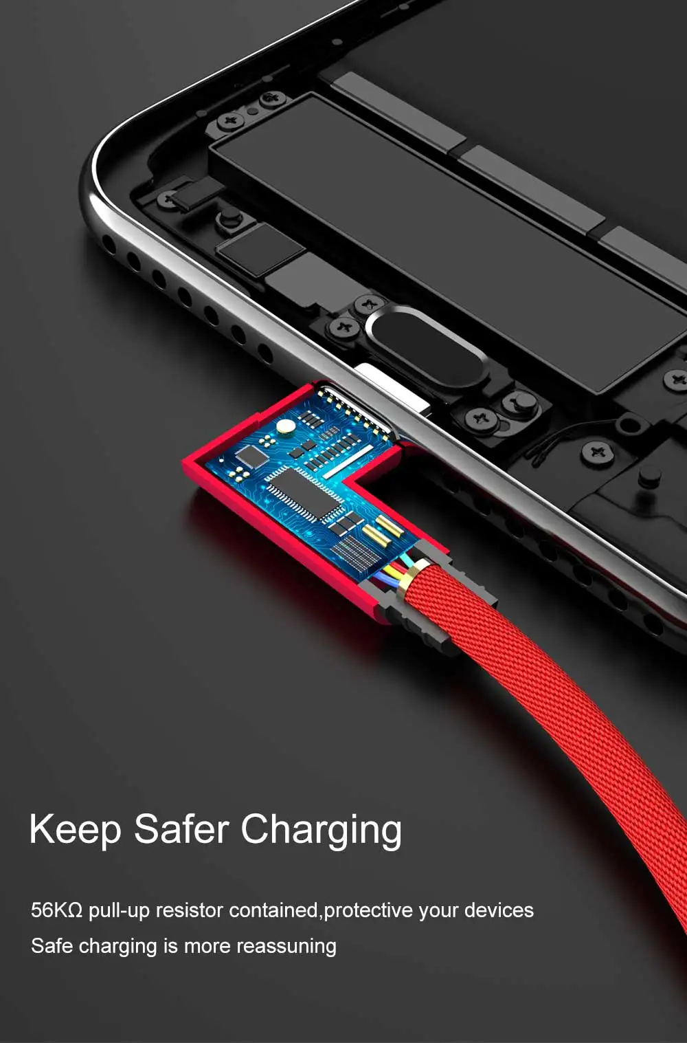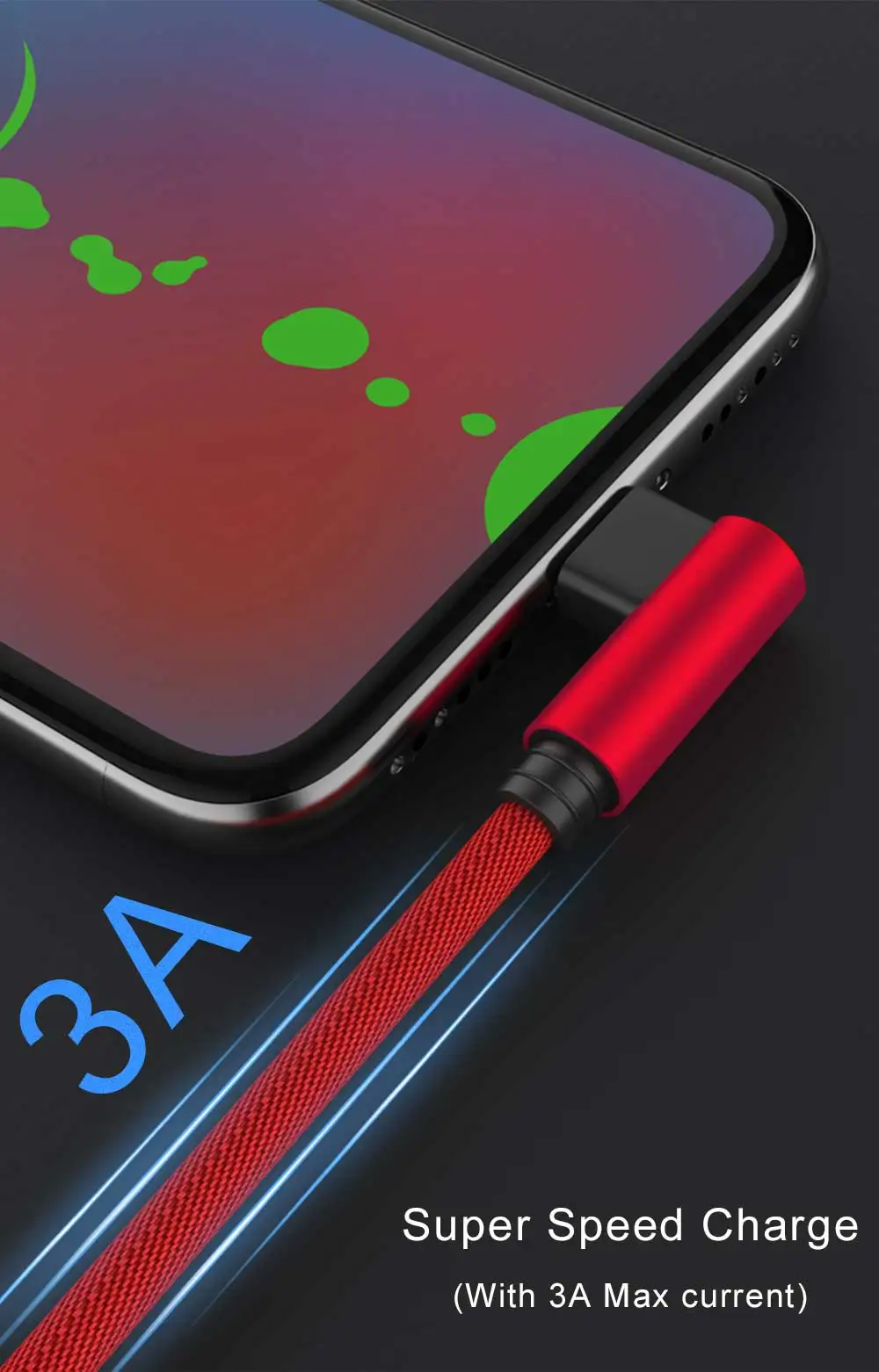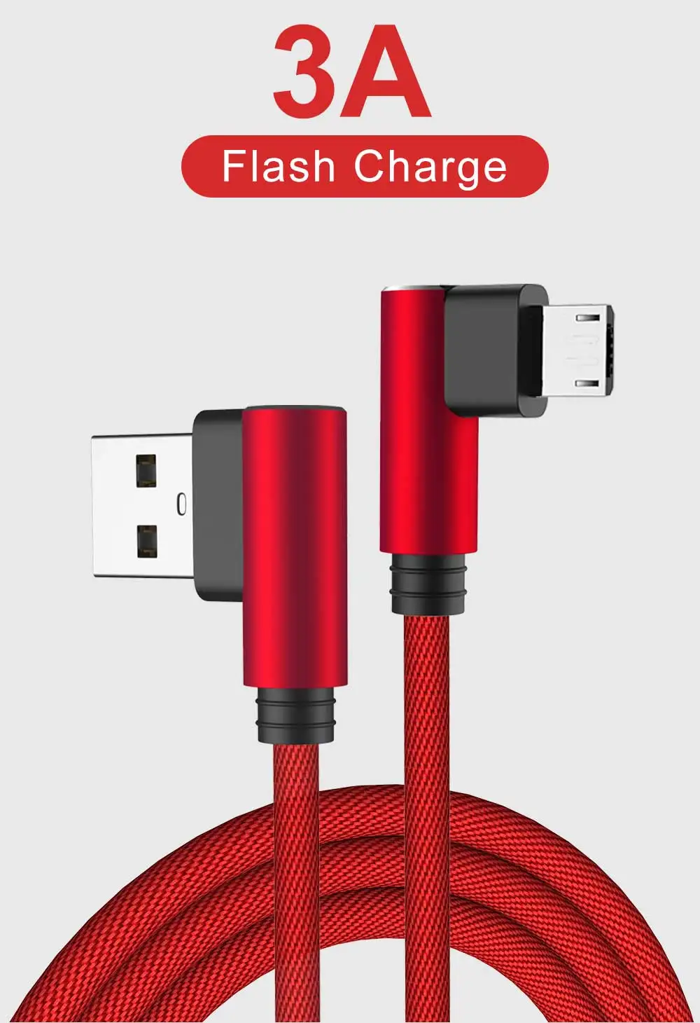 Нейлоновый кабель Micro USB 90 градусов, 3 А, быстрое зарядное устройство для Samsung S7 S6 Huawei Xiaomi Redmi Note 5, Android, USB кабель для передачи данных
