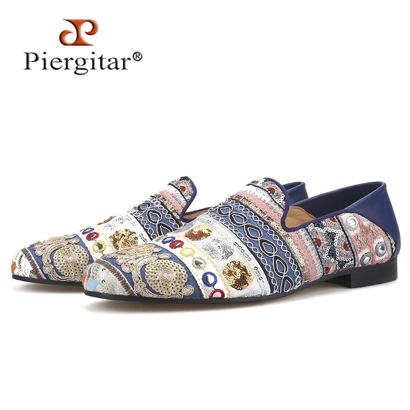 Piergitarмужские лоферы ручной работы, смешанные цвета, с блестками, с отстрочкой сзади, из овечьей кожи, можно носить как мужские тапочки размера плюс, 2019