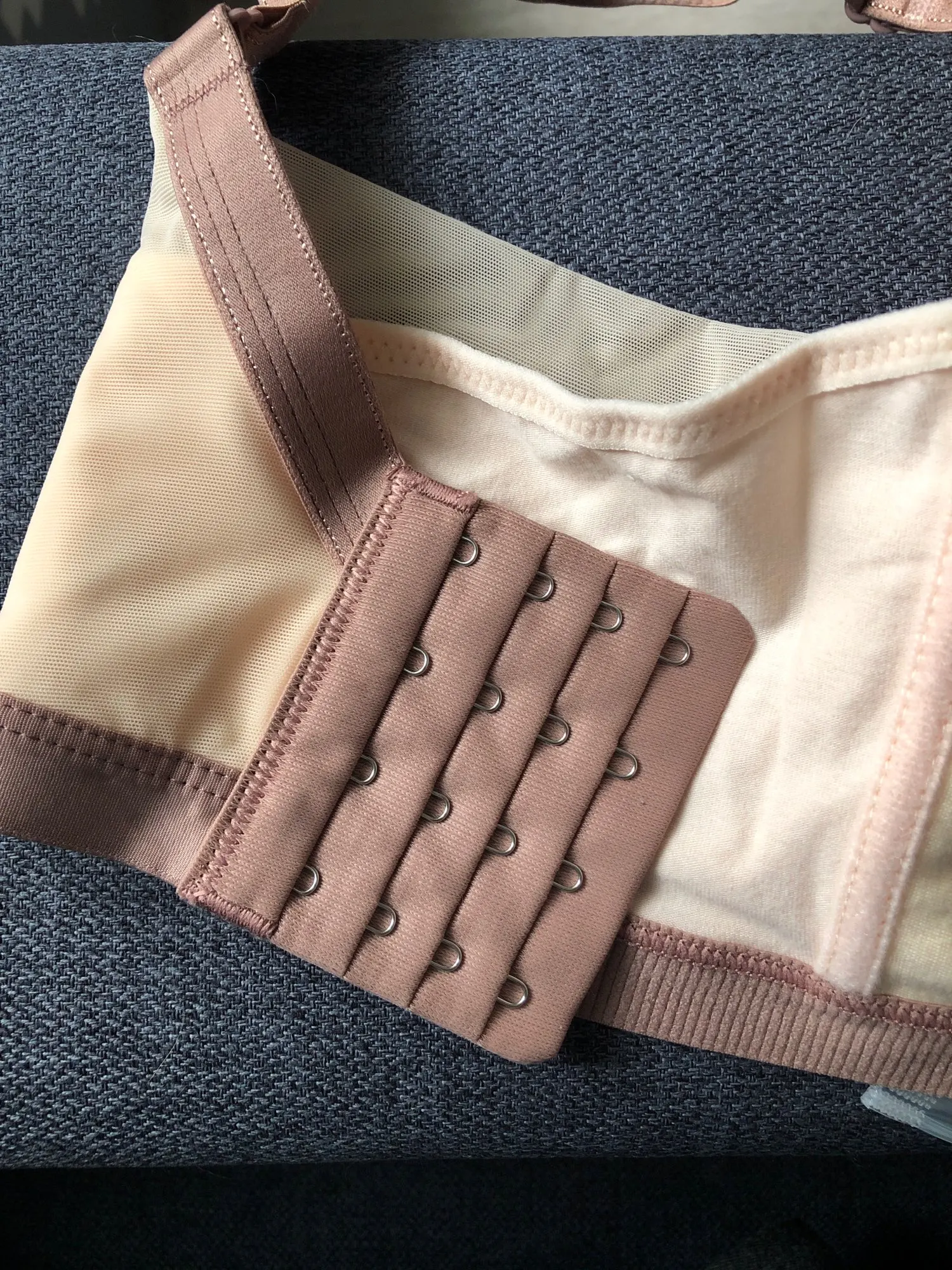 Немного отличается от фото. Цвет скорее ближе к персиковому и сам бюстгальтер более закрытый, чем на фото (поэтому хотела поставить 4 звезды). В целом материал приятный к телу, без неприятного запаха. Удобная застежка, можно расстегивать и застегивать одной рукой (для меня это было важно). Есть дополнительная секция для увеличения обхвата. Доставка на неделю раньше ожидаемой.